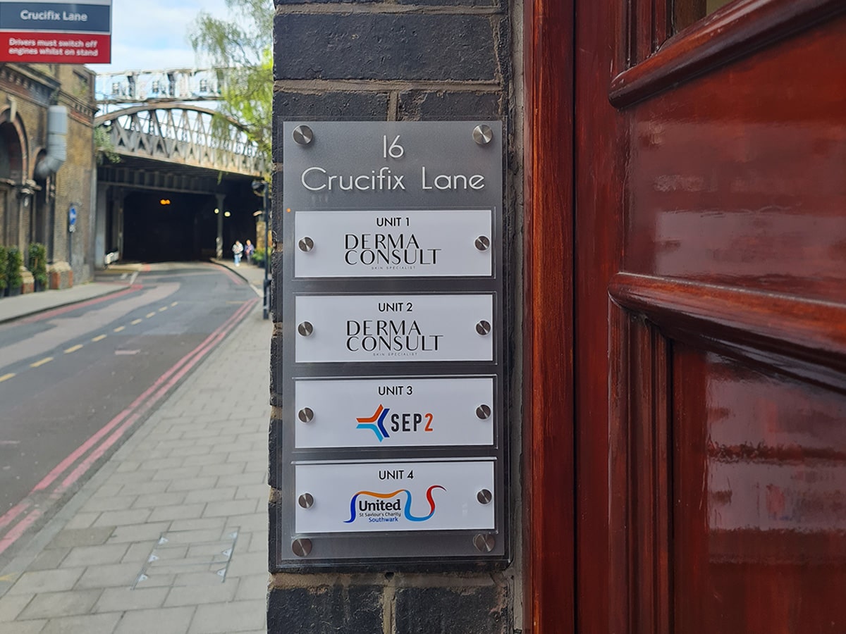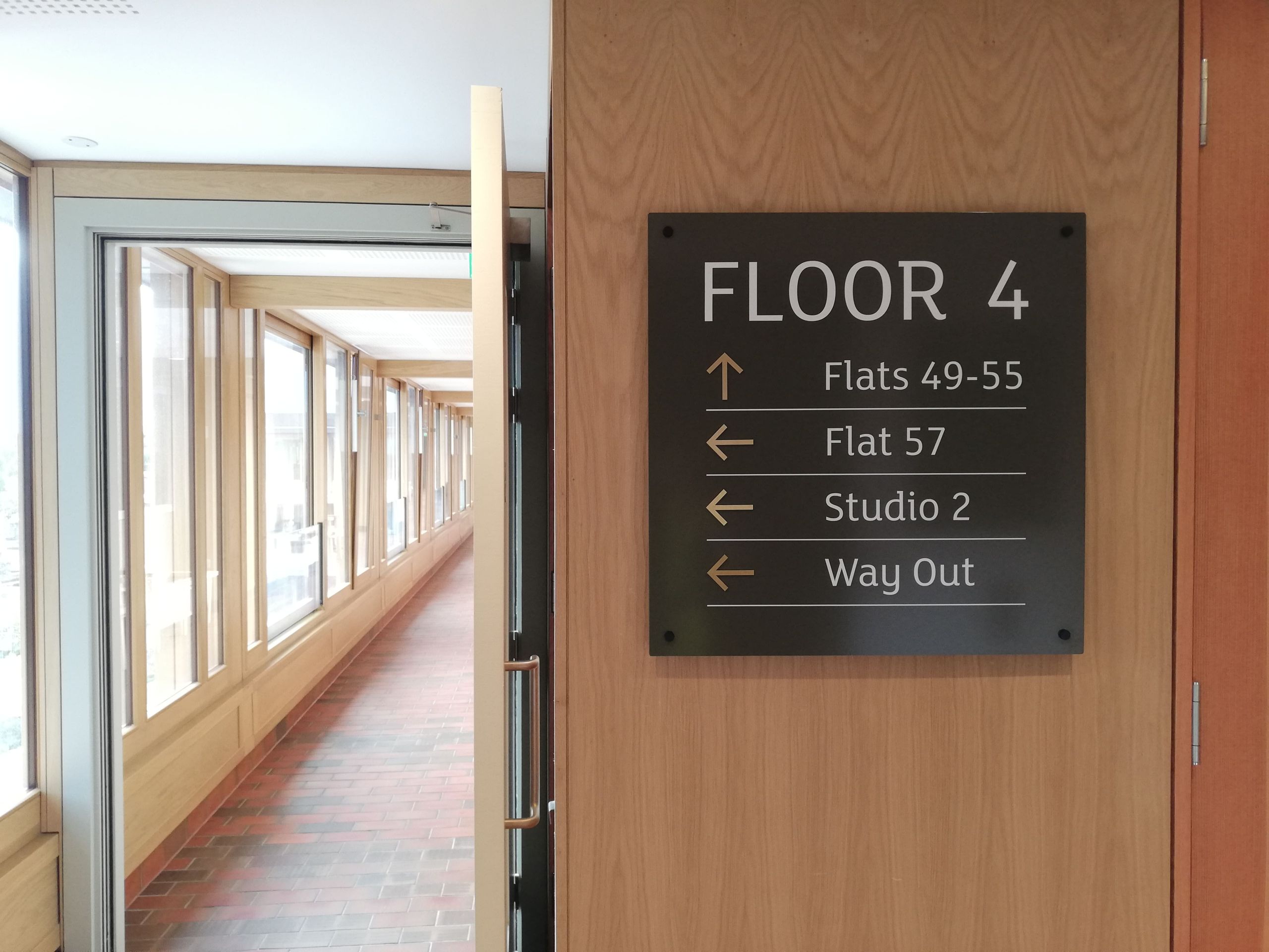 For external wayfinding, directories, plaques or post-mounted panels guide visitors through car parks, gardens or residential areas, maintaining consistency with your interior signage system.